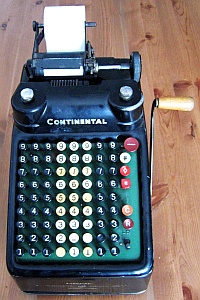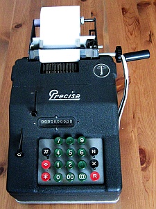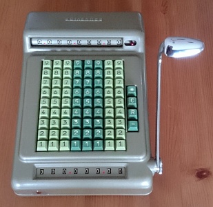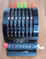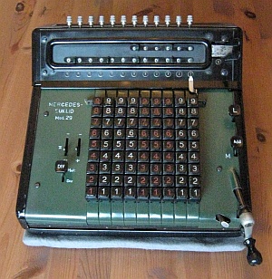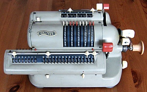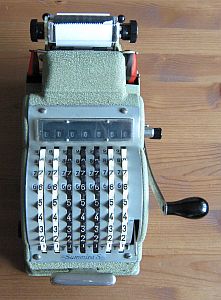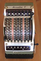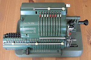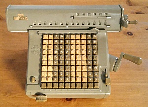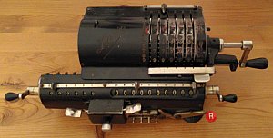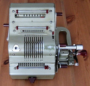 Da in der Literatur und auch im Internet zum Teil unterschiedliche Definitionen zu finden sind möchte ich hier die Kriterien kurz erläutern, nach denen ich die Rechenmaschinen klassifiziere. Klar und eindeutig ist, was eine Rechenmaschine zu einer eben solchen macht: ein automatischer Zehnerübertrag im Resultatwerk. Bei der Einteilung in Ein- / Zwei- / Drei- und Vierspezies-Maschinen jedoch scheiden sich bisweilen die Geister. Ich weise hier ausdrücklich darauf hin, dass es sich dabei um meine persönlichen Ansichten handelt, die unter Umständen zu von der Literatur abweichenden Resultaten führen. Zur Einteilung in Ein- / Zwei- / Drei- und Vierspezies-Maschinen gilt es zu bewerten, welche der vier Grundrechenarten mit der jeweiligen Maschine durchgeführt werden können. Dabei richten sich meine Überlegungen nicht in erster Linie auf bestimmte technische Details der Maschine selbst, sondern setzen bei den vom Benutzer zu beherrschenden Fähigkeiten und Tätigkeiten an. Rechenmaschinen sollen den Benutzer ja von seiner geistigen Tätigkeit beim Rechnen weitestgehend entlasten, dennoch sind einige grundlegende Fertigkeiten für deren Bedienung notwendig. Beherrscht der Benutzer alle diese Fertigkeiten, so ist er damit in der Lage, alle vier Grundrechenarten auf einer Vierspezies-Maschine durchzuführen, natürlich immer unter der Voraussetzung, dass er mit der Bedienung der jeweiligen Maschine vertraut ist. Sollte also die Durchführung einer Rechnung auf einer bestimmten Maschine mit diesen Anforderungen möglich sein, so habe ich die jeweilige Rechnung unter „Rechenarten“ angeführt und auch zur Bewertung herangezogen. Sollten auf einer Maschine darüber hinaus Rechnungen durchführbar sein, die vom Benutzer mehr als die im Folgenden beschriebenen, grundlegenden Fertigkeiten verlangen, so habe ich sie unter „Rechenarten“ in Klammer angeführt. Hauptaugenmerk liegt dabei auf einer stets auf ihre Richtigkeit hin kontrollierbaren und nachvollziehbare Berechnung. Hier nun die vier grundlegenden Fähigkeiten zur Bedienung einer Rechenmaschine: Zahlen eingeben Dabei ist es unerheblich, ob dies über Tastendruck oder Hebelstellung erfolgt. Ebenso ist es unerheblich, ob es sich dabei um Komplementärzahlen handelt oder nicht. Sollen für eine Rechnung Komplementärzahlen verwendet werden, so kommt es lediglich darauf an, ob diese vom Benutzer selbst zu berechnen sind, oder ob die Rechenmaschine ihm diese Aufgabe abnimmt. Dazu reichen meiner Ansicht nach auch schon zusätzlich an geeigneter Stelle angebrachte (meist kleinere) Komplementärzahlen. (Beispiel Comptometer: Je nach Rechenoperation werden vom Benutzer entweder die auf den Tasten angebrachten großen Ziffern oder die kleinen Ziffern - und damit Komplementärzahlen - berücksichtigt.) Kurbel oder Hebel wiederholt betätigen Multiplikation und Division werden auf einer Rechenmaschine meist durch wiederholte Addition oder Subtraktion realisiert. Hier ist es unumgänglich, dass die Anzahl der Kurbeldrehungen bzw. Hebelzüge für den Benutzer nachvollziehbar und kontrollierbar ist. Ein alleiniges Mitzählen im Kopf halte ich hingegen für nicht ausreichend. Um dies zu erreichen sind folgende Einrichtungen an Rechenmaschinen geeignet: Zählwerke bzw. Quotientenwerke (ein- oder mehrstellig) sowie Druckwerke. (Beispiel Comptometer: Für eine mehrfache Addition muss der Benutzer im Kopf mitzählen und hat keine Kontrollmöglichkeit.) Stellenverschiebung Für die Durchführung von Multiplikation und Division auf einer Rechenmaschine ist immer auch eine Stellenverschiebung des zu addierenden oder zu subtrahierenden Wertes erforderlich. Diese Stellenverschiebung muss durch die Maschine erfolgen, um Fehler zu vermeiden. Dies kann sowohl durch Verschiebung eines Schlittens als auch durch zusätzliches Eintasten von Nullen erfolgen. (Beispiel Comptometer: Die Stellenverschiebung erfolgt bei Multiplikation und Division durch eine Bewegung der Hand des Benutzers über die Tastatur und nicht durch die Maschine.) Zahlen ablesen Dazu zählt nicht nur das Ablesen von Ergebnissen im Resultat- oder Quotientenwerk, sondern auch das Ablesen eines ggf. vorhandenen Divisionsrestes um zu prüfen, ob eine Division (in der jeweiligen Stelle) abgeschlossen ist oder noch weiter Subtrahiert werden muss. Ein Glockensignal für den Überlauf halte ich dabei für nicht zwingend erforderlich, da ein Überlauf für den Benutzer auch ohne Glocke eindeutig erkennbar ist. (Beispiel Comptometer: Bei der Division wird solange subtrahiert, bis der Divisionsrest klein genug ist.) |